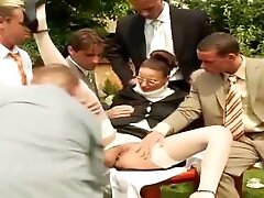 Sweet Japanese cutie enjoys being penetrated with many cocks by GangAsia