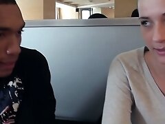 Sexy teen 18+ is on her knees sucking two cocks for the team