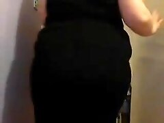 Chubby fuck hairy pussy with a big black dildo, doggystyle her fat butt shaking.