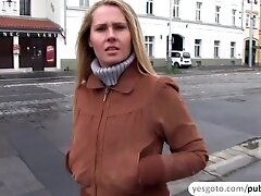 Unshaved pussy of a hot euro girl gets rammed in public for cash